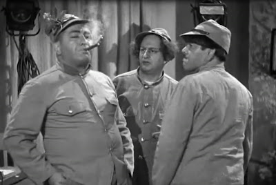 But, interestingly, the Stooges did not borrow this old comic business outright. They started out with another routine that, although similar enough, maintained a distinct identity of its own. It was over a span of eight years that the two routines finally merged into one. If I was a wise old professor, I would call this comedy convergence.