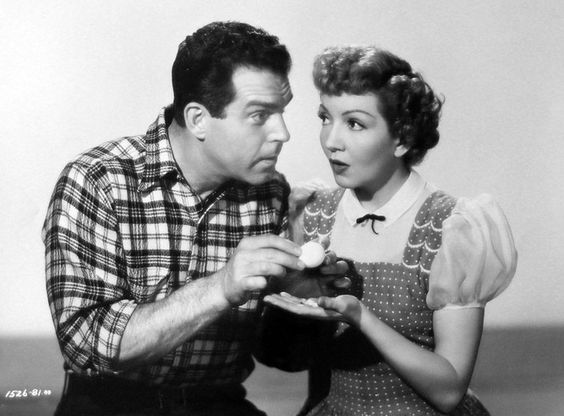 In Baby Face Harrington (1935), Charles Butterworth embarrasses his wife (Uma Merkel) at a high society party when his awkward efforts to perform a magic trick with an egg result in the appalling splattering of egg yolk.