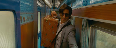 The Darjeeling Limited is a film about travelers. The travelers are the Whitman brothers, Peter (Adrien Brody), Francis (Owen Wilson) and Jack (Jason Schwartzman). The journey that these men undertake through India is both physical and spiritual. The luggage is an important part of the story because it belonged to the brothers' deceased father. We are constantly reminded of this fact as we can see the dead man's initials emblazoned across the front of every bag. The importance of the luggage is emphasized by the fact that it constantly surrounds the main characters, it serves as a reoccurring prop, and it even occupies the frame alone at times.